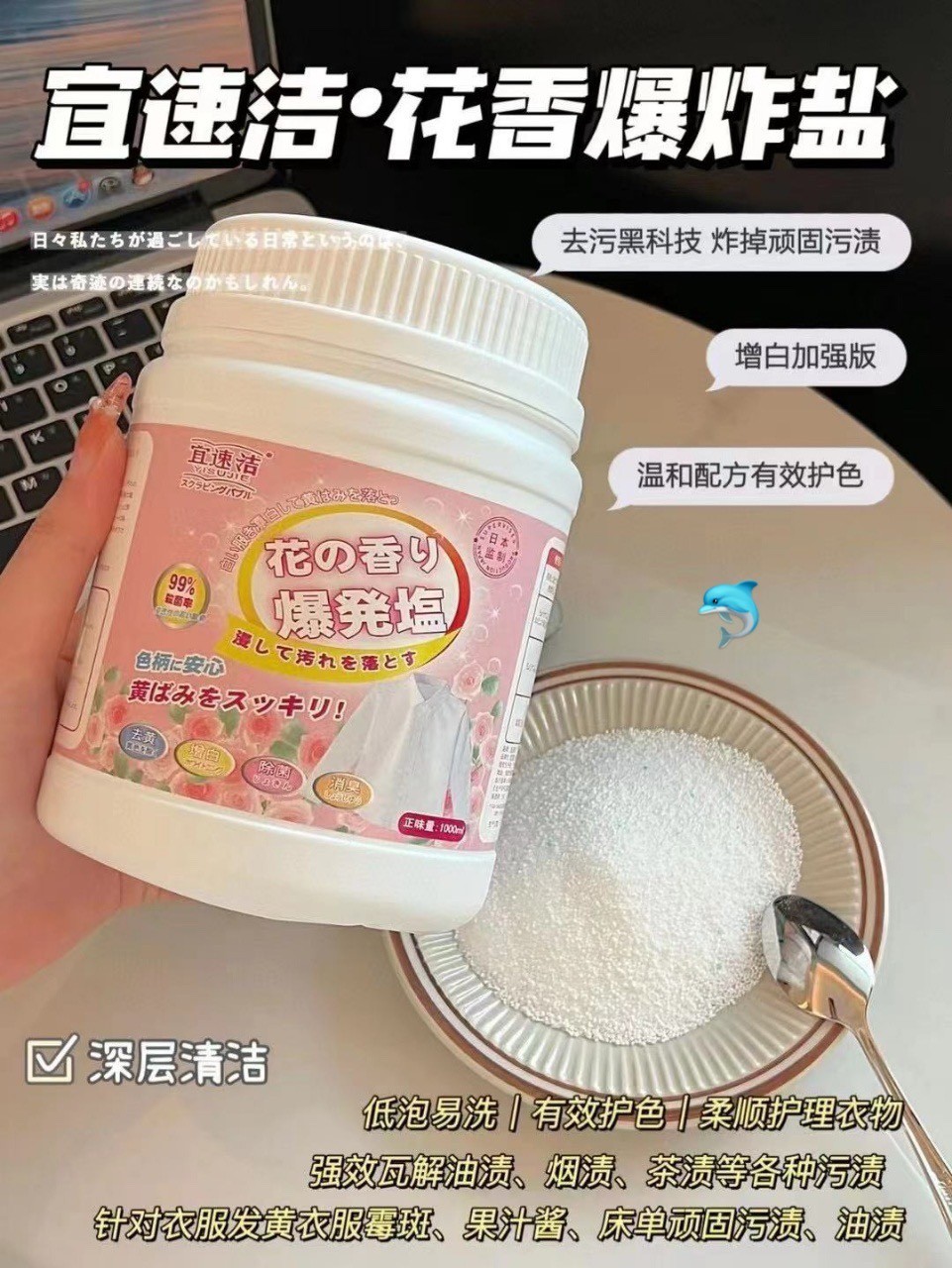 👉 只需将爆炸盐溶解在温水中,然后将衣物浸泡一段时间,顽固污渍就会消失无踪!