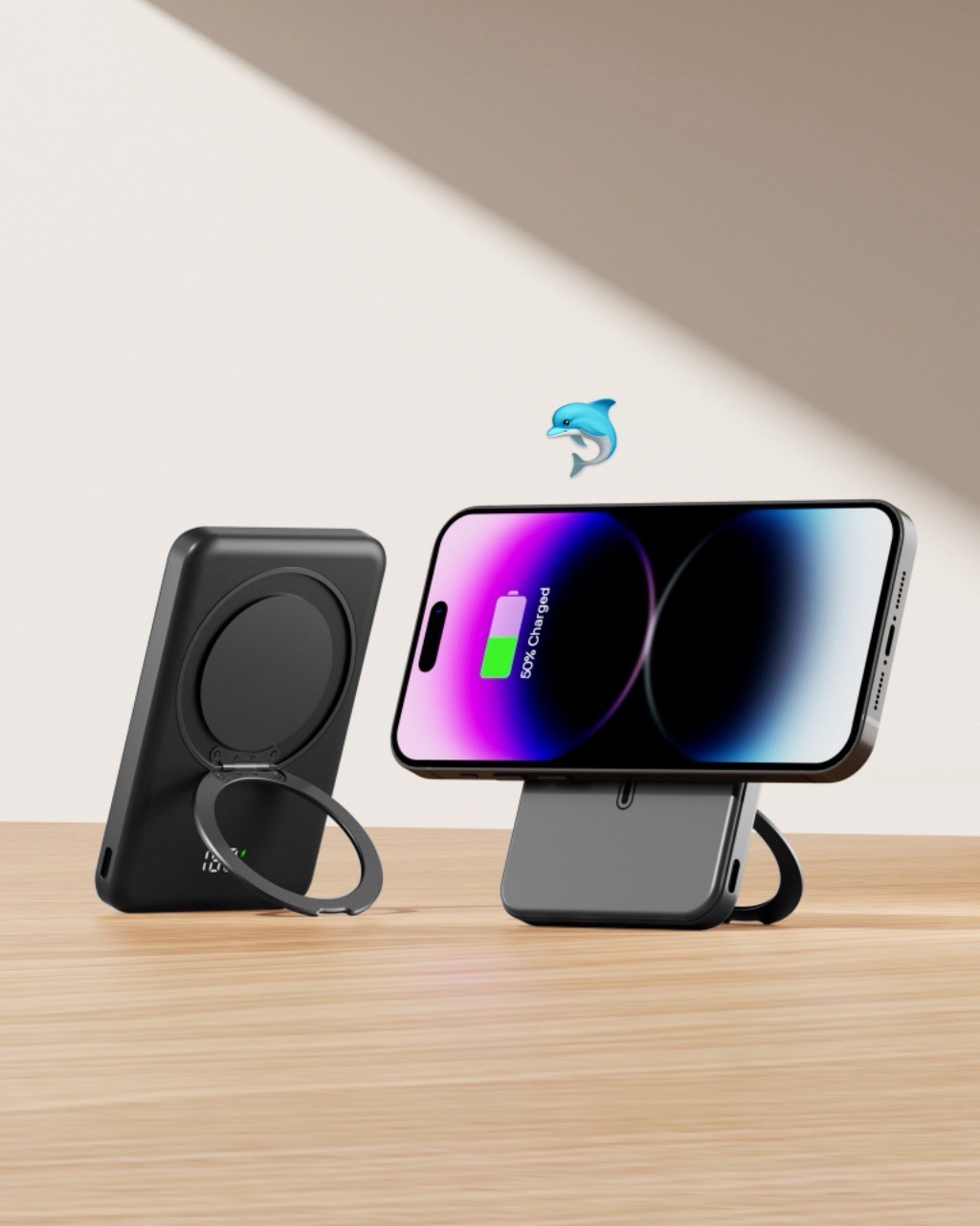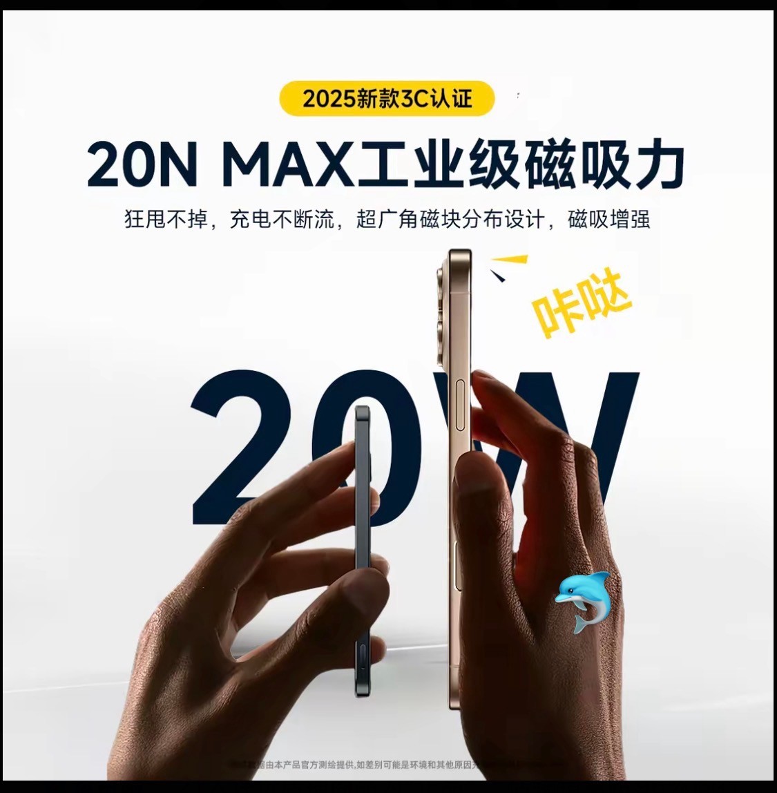 🔋充电+支架二合一,场景全能王,1️⃣无线快充15W:支持磁吸无线充电,往上面一贴就开充,边刷剧边充电超丝滑~2️⃣有线快充25W:Type-C接口,给其他设备快充也不在话下,着急出门时充电速度飞起⚡。3️⃣自带旋转支架:支架可以灵活旋转调整角度,不管是办公室摸鱼追剧📺、地铁上刷短视频、还是餐厅等餐时看综艺,都能稳稳支棱起手机,解放双手超舒服~