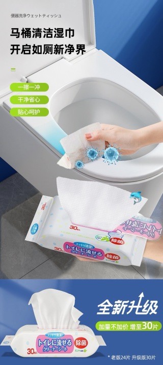 🐬🌟出口日本🇯🇵马桶消毒湿巾🌟👯♀️精准狙击!这些人必须囤👍!宝宝皮肤娇嫩,擦完放心让娃用儿童马桶🚽,酒店公厕一擦即净,合租也能隔绝交叉感染❌!拒绝HPV等病毒隐患,温和不刺激皮肤,不用刷不用等,一张搞定清洁杀菌👍! 采用医用级可降解无纺布,边边角角的污渍都能吸干净。还有双层缓释技术,外层去污内层长效抑菌,擦完持续防护不怕二次污染,干湿刚好不滴水,擦完速干能直接坐~ 🦠「硬核功能!3秒解锁洁净」 ✅ 灭菌力拉满:99.99%杀灭大肠杆菌、金黄色葡萄球菌,还能灭活HPV病毒 ✅ 去味+留香:擦完带走异味,只留淡淡植物清香,卫生间都清新了 ✅ 多场景适配:马桶圈、水箱、门把手全能擦,一巾多用超方便 抽数:30片/包 尺寸:16cm×25cm 保质期:3年