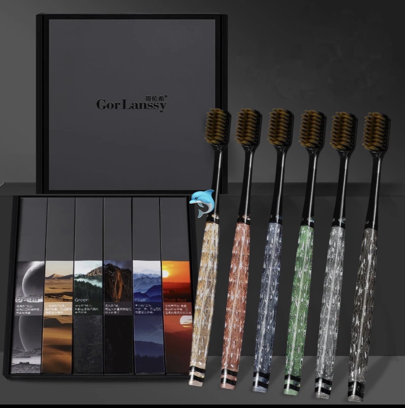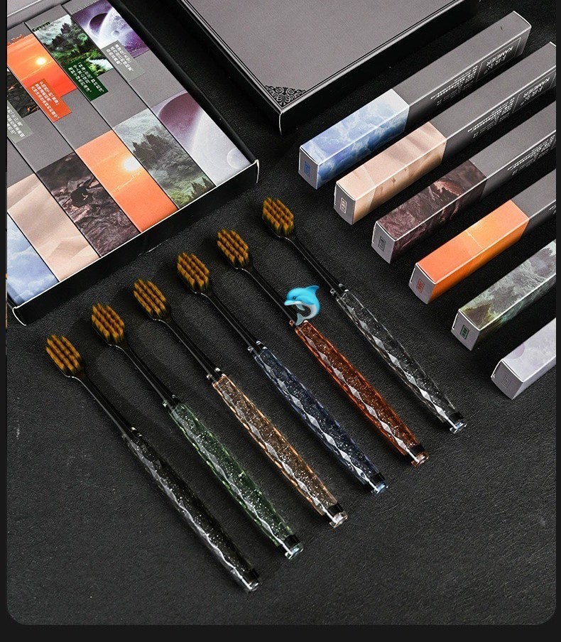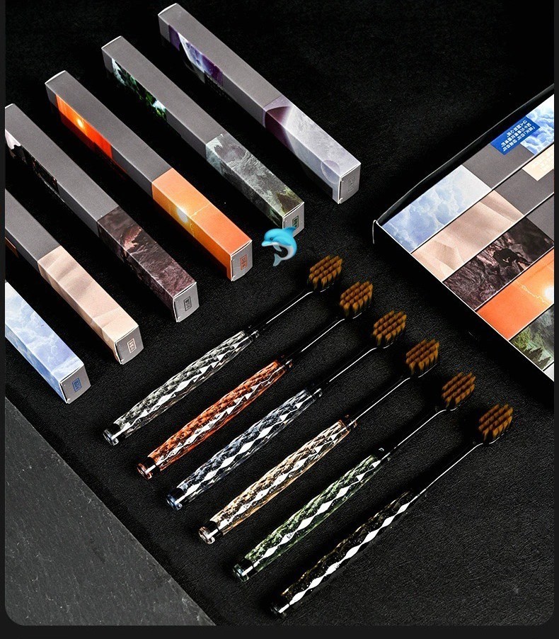 🐬🐬🐬🌟卡玫尔轻奢细毛水晶牙刷🪥礼盒装🌟让你的刷牙🦷体验焕然一新!手柄钻石设计巧妙,符合人体工程学,握感舒适,使用起来更加轻松自在。卡玫尔细毛牙刷选用高品质的环保♻️材质,触感柔软细腻,不会伤害牙齿🦷和牙龈。轻奢细毛能够深入牙缝,有效清除牙菌斑,让你拥有更加健康的口腔环境。🪥