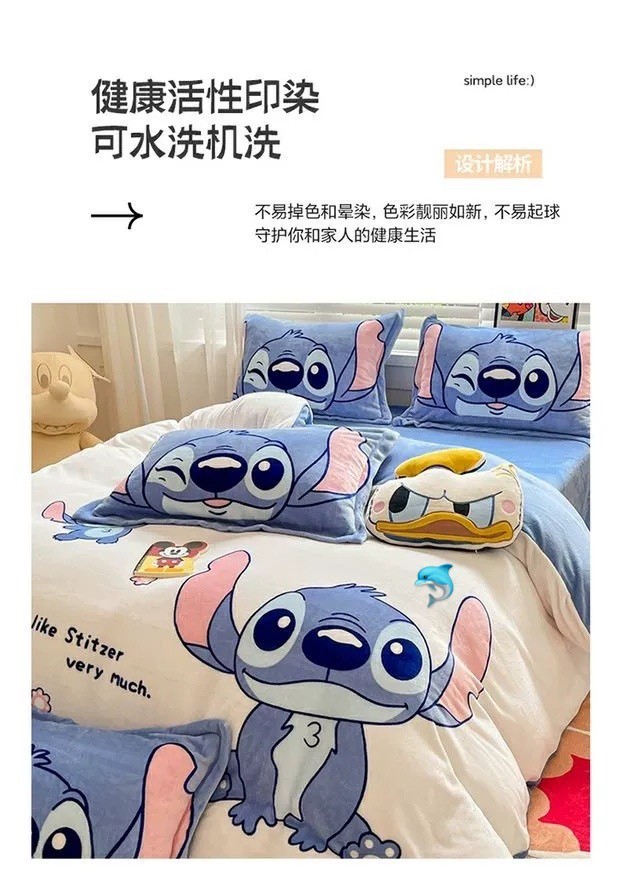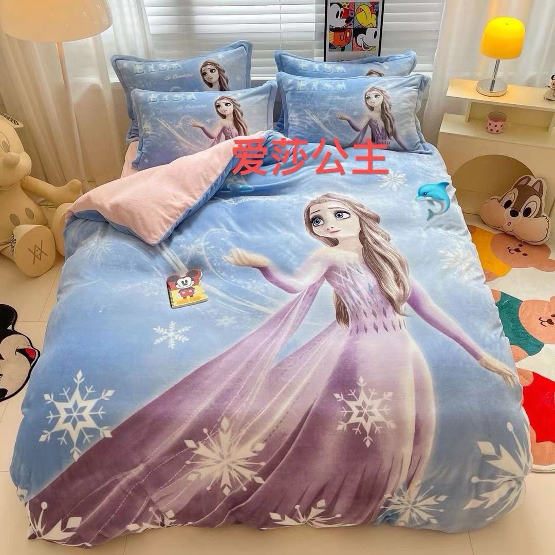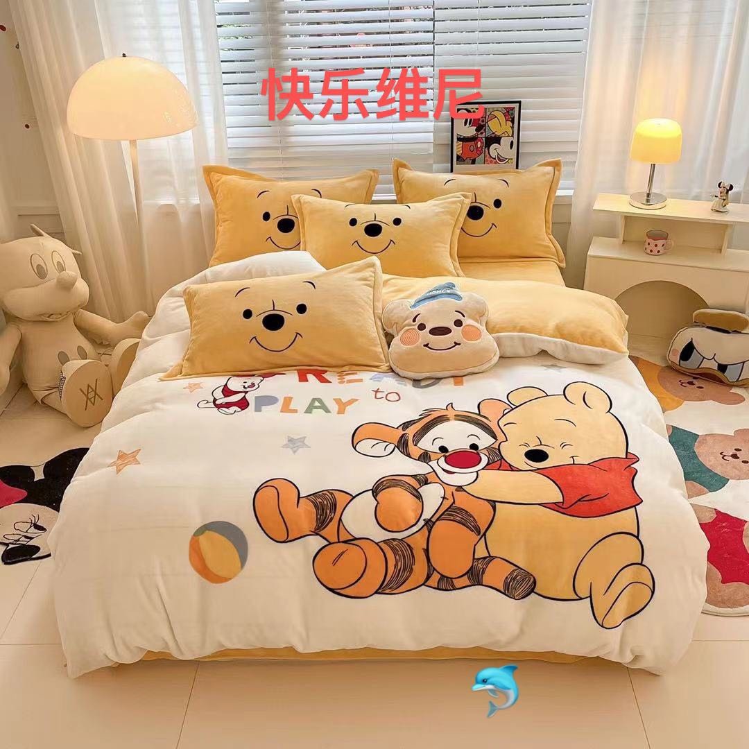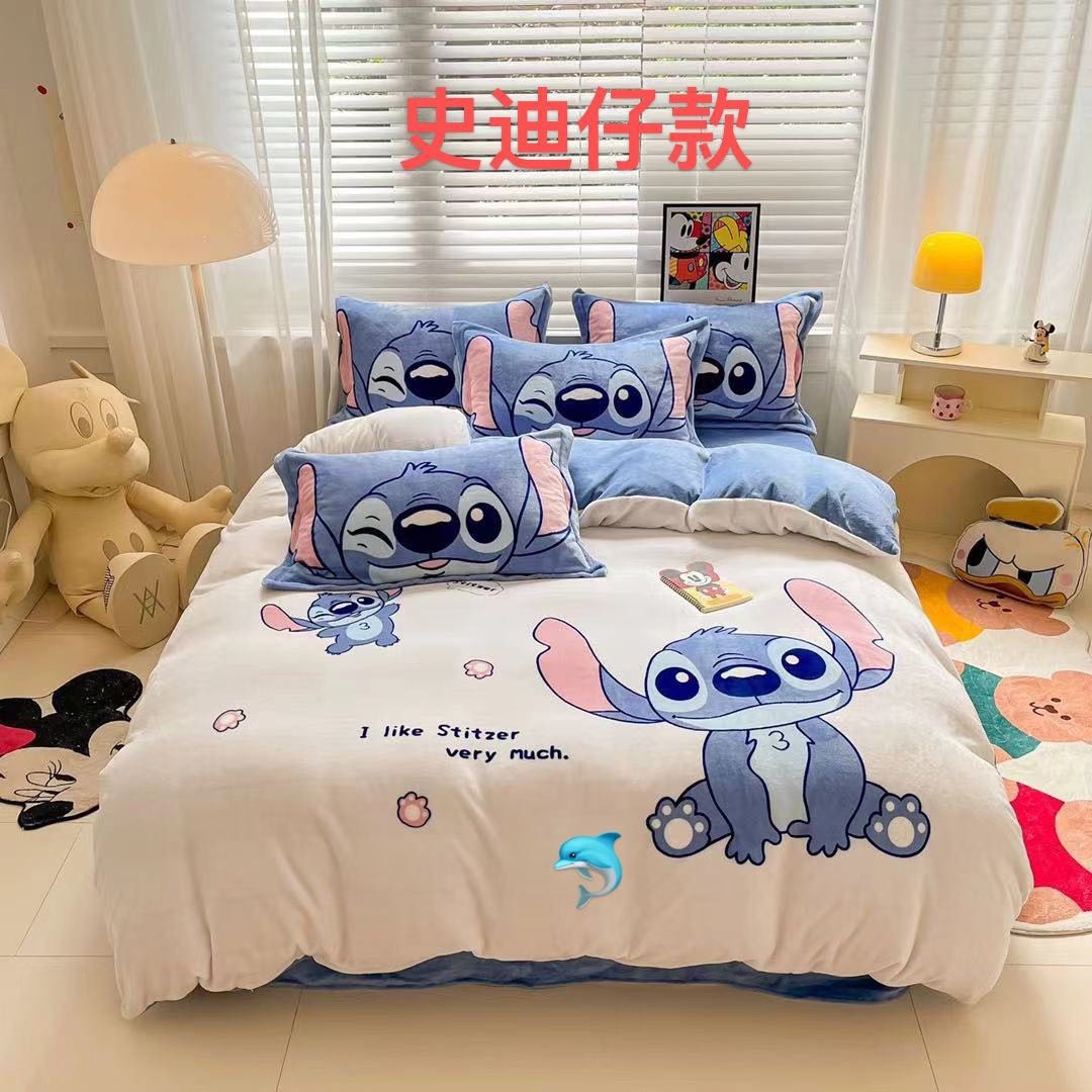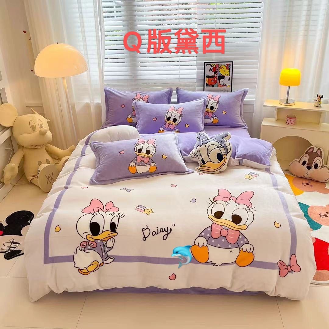 卡通牛奶绒四件套