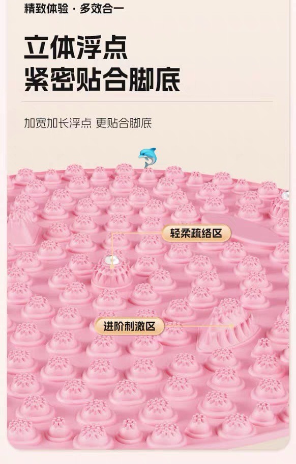 这款按摩垫上有柔软弹性的按摩点,刺激脚底,力度刚刚好,酸爽舒适~立体浮点设计,紧密贴合脚底,还有轻柔疏络区和进阶刺激区,每天坚持在上面按摩十分钟,就能放松足底筋膜,足不出户享受专业足疗按摩💆♂️!