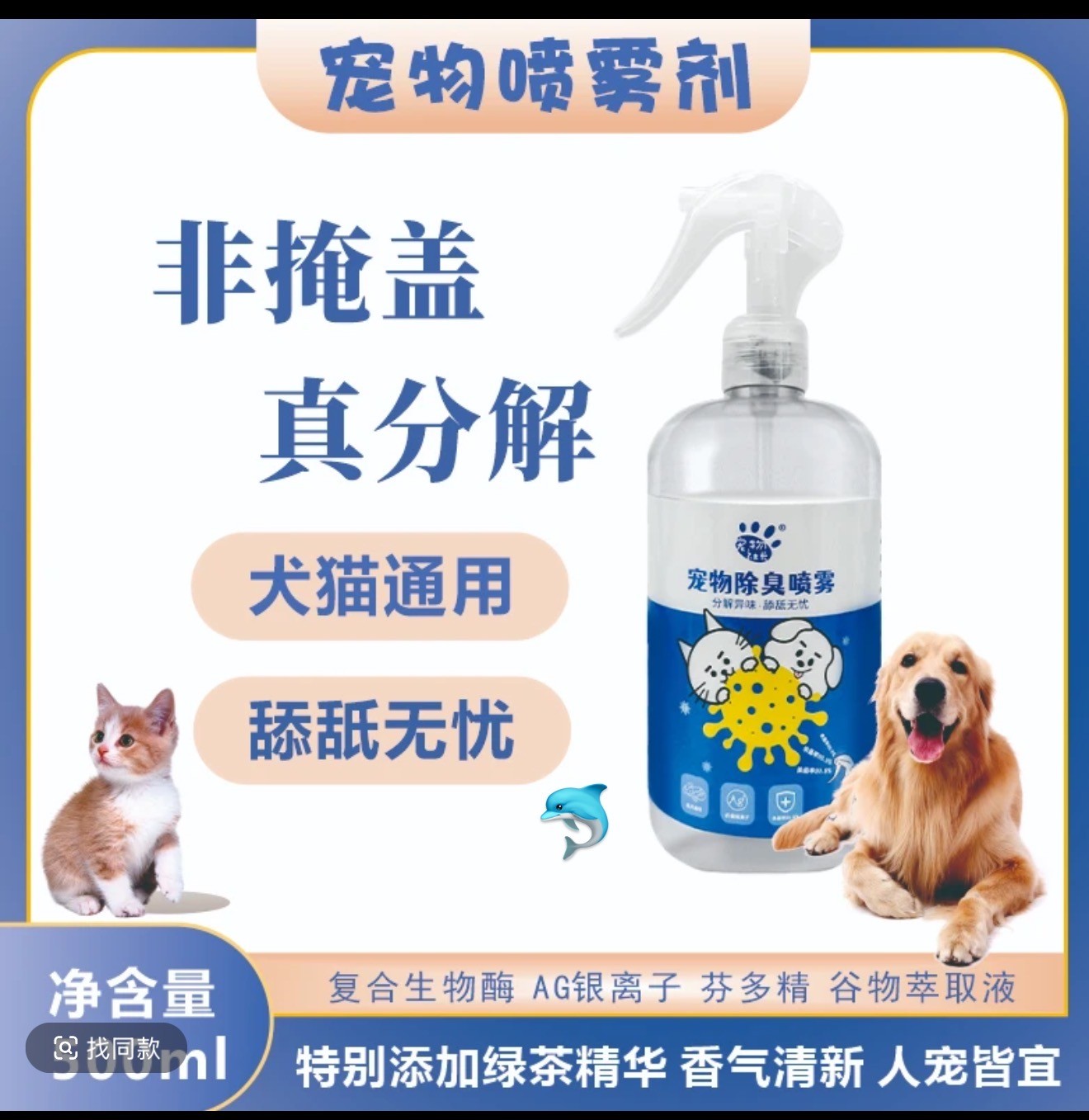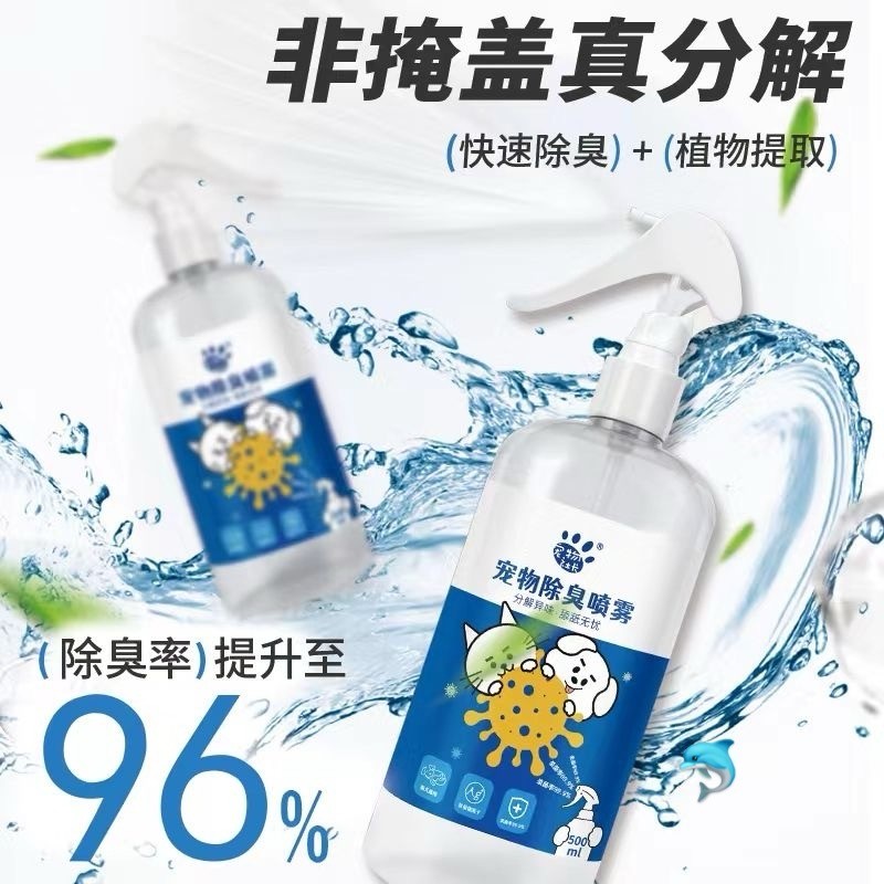 超高效除臭喷雾!一瓶足足500ml,大容量超耐用!🛡️除臭率高达96%,杀菌力更是惊人99.9%!经过权威机构检测,无毒安全,人宠共享清新空间,再也不怕毛小孩乱蹭乱舔啦!