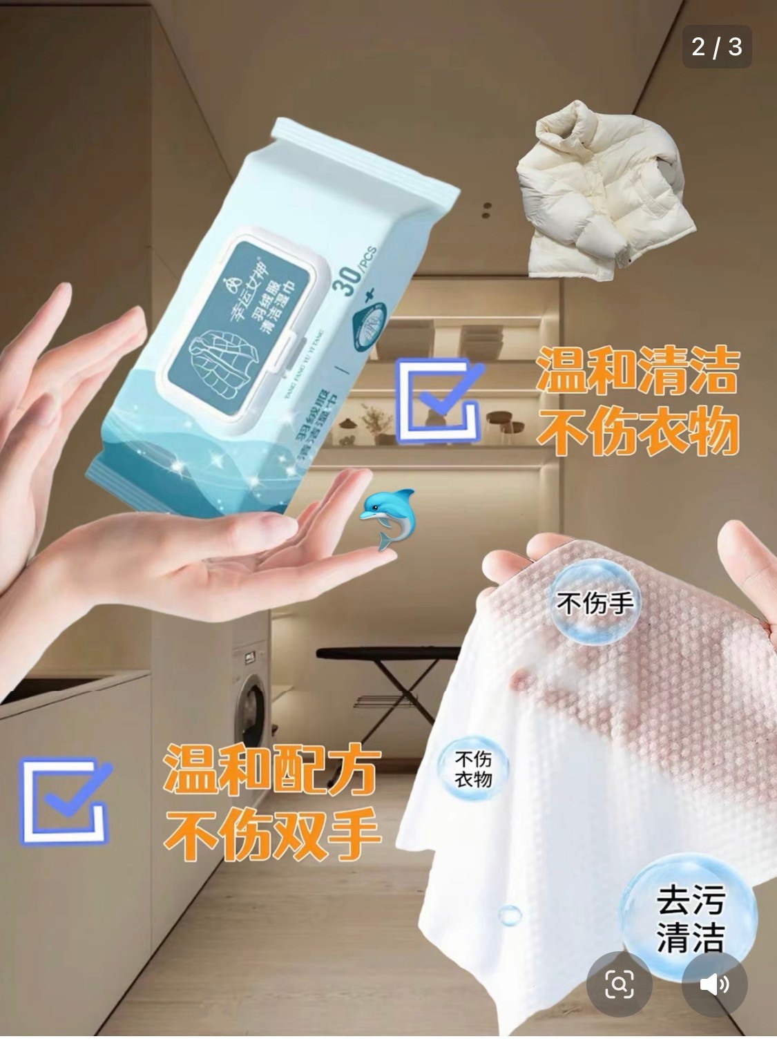 ✅【产品属性区别】吊打普通清洁产品! 和普通湿巾比:专研羽绒服配方,不是表面清洁,能溶解羽绒专用污渍,还能护绒🙌 和洗衣液/肥皂比:不用水洗、不用搓揉,局部清洁超方便,避免整件衣服受潮~ 和干洗店比:价格不到干洗店1/10,在家就能清洁,省时省钱,应急超实用~ 和纸巾+清水比:清洁力更强,能去除顽固污渍,还不留水痕,不会损伤羽绒材质 羽绒服清洁湿巾30抽 材质:无纺布酒精等 保质期:3年