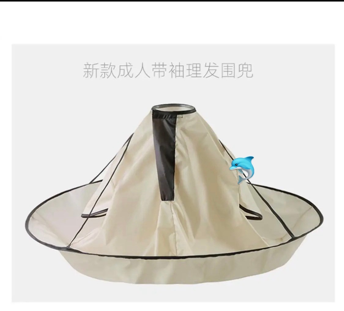 颜色:浅咖 尺寸:直径90cm 款式:圆环,带袖口 特点:可自身理发,碎发收集 适用:理发围巾