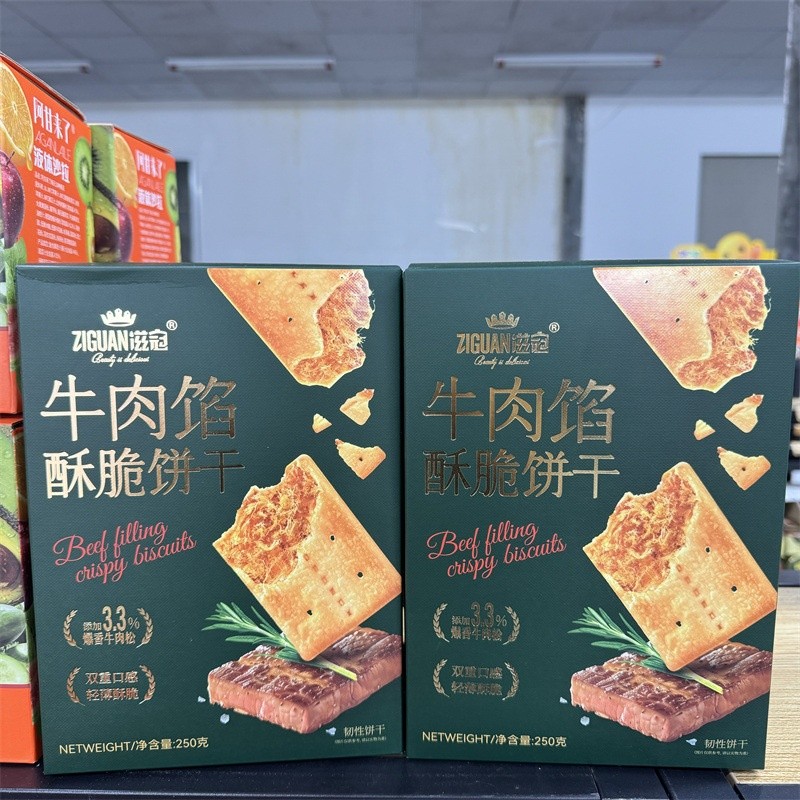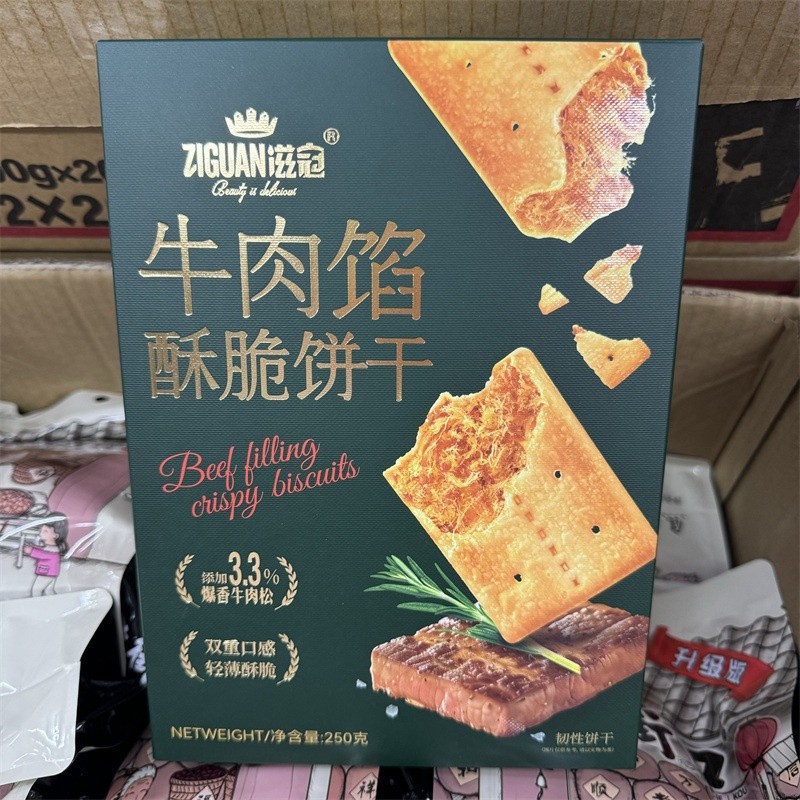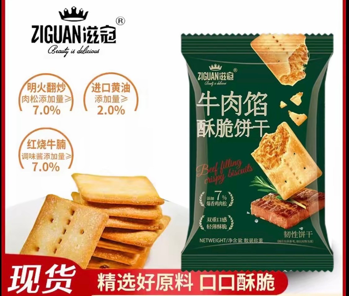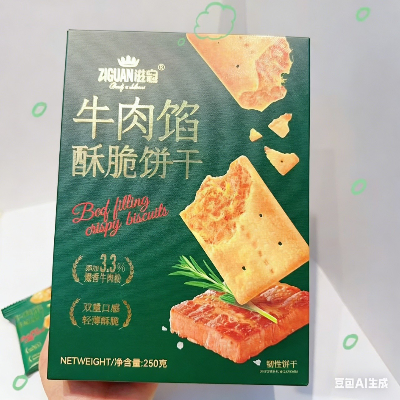 谁能拒绝这 “酥到掉渣的牛肉饼” 啊🤤咸香上头根本停不下来~💓!真肉添加超实在:3.3% 醇香牛肉松注入,每口都能嚼到肉香~!双重口感暴击:外层轻薄酥脆,内馅咸香绵密,层次丰富到尖叫!配料表超安心:小麦粉 + 牛肉松 + 食用植物油,简单纯粹无添加~ 💡「吃货 TIPS」 ▪️ 开封后记得密封哦~不然会变软影响口感! ▪️ 搭配冰红茶或气泡水,解腻又清爽~ 这饼干属于 “一吃就停不下来” 系列,咸香党闭眼冲就对啦!