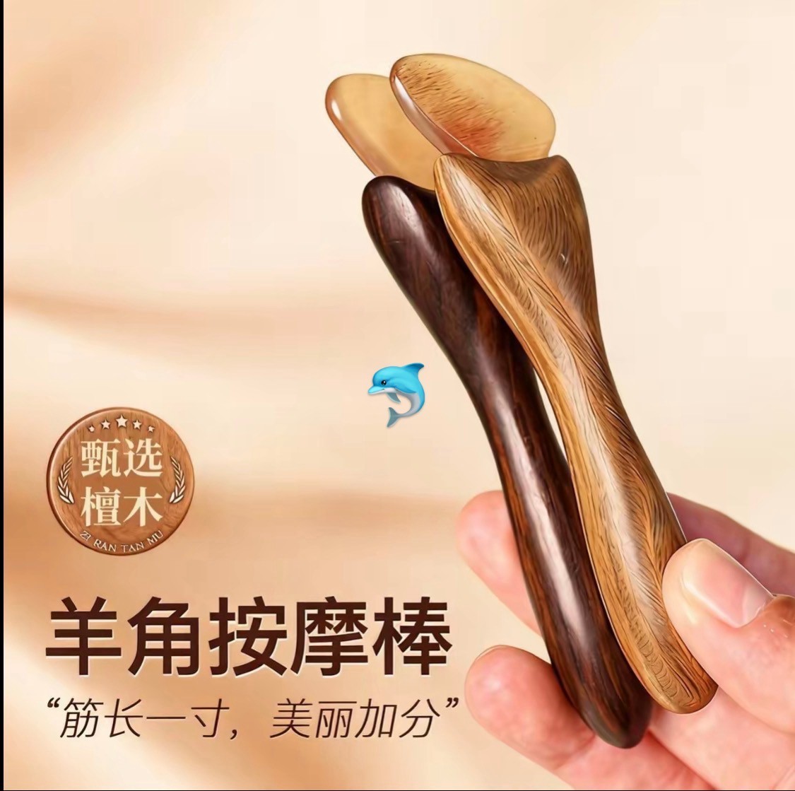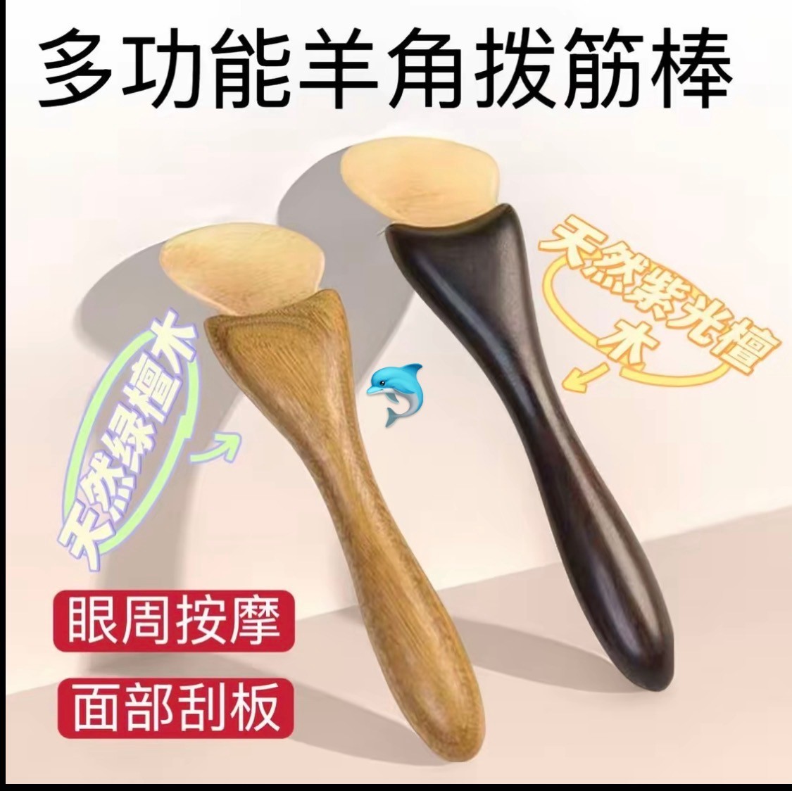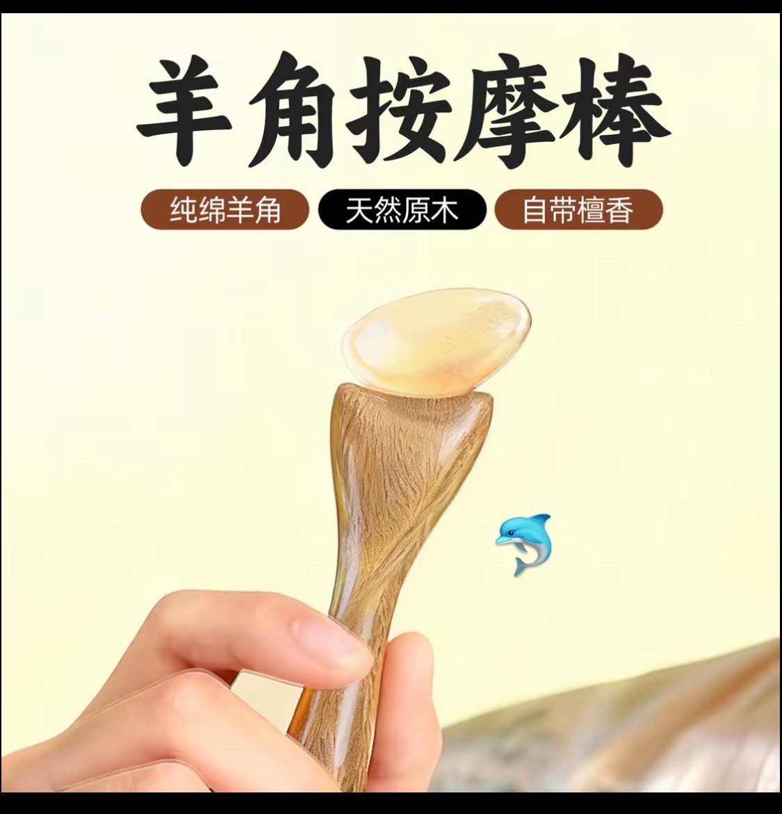 材质:紫光檀/绿檀 +羊角的材质 尺寸:约 12cm 长,3.2cm 宽 颜色:1️⃣黄色-绿檀 ,2️⃣深棕-紫光檀 功效:保健,按摩