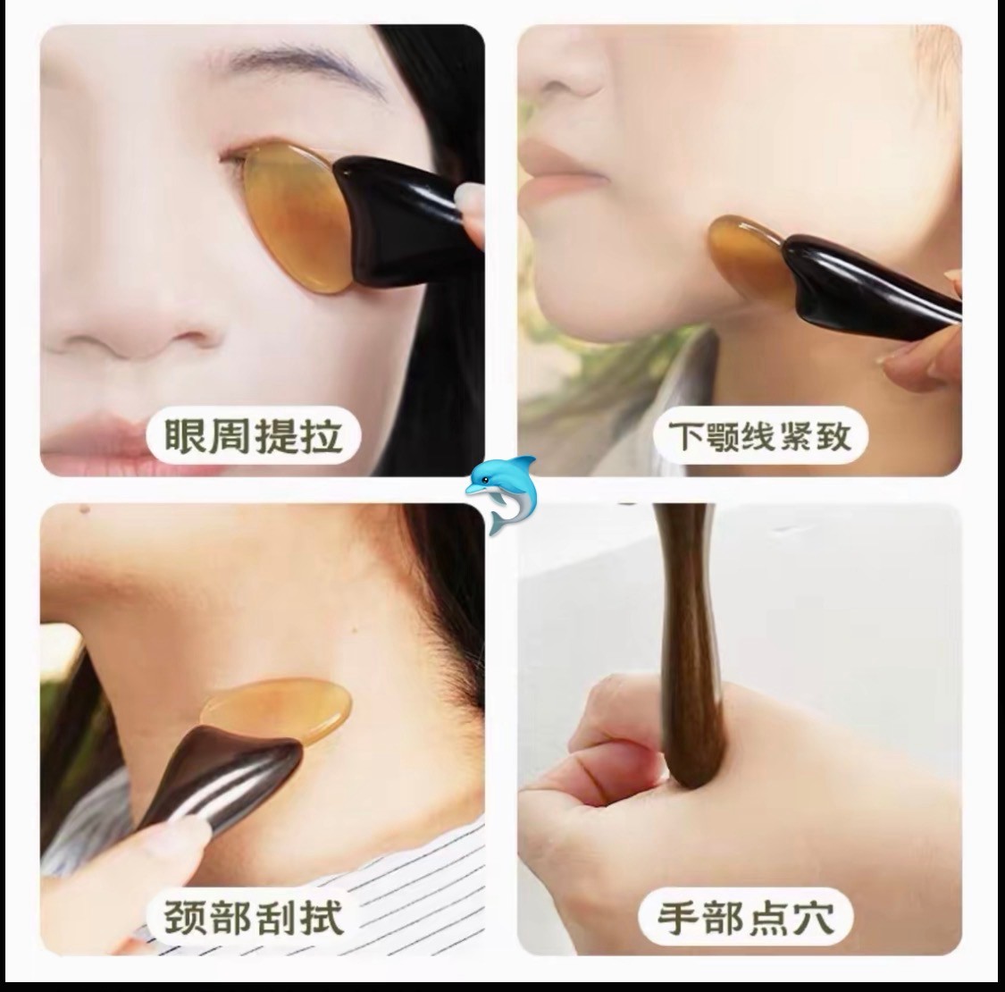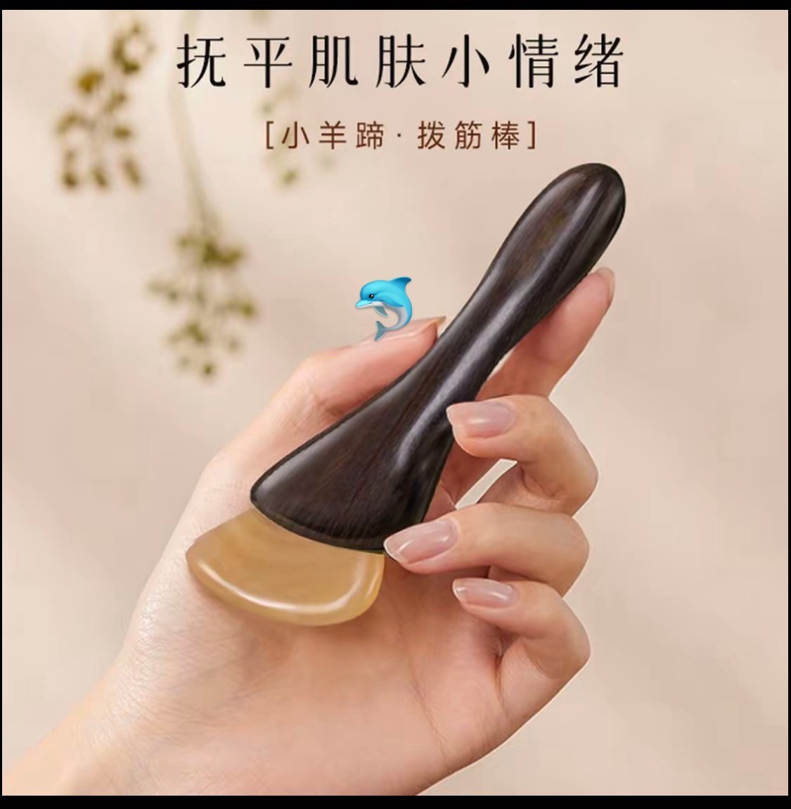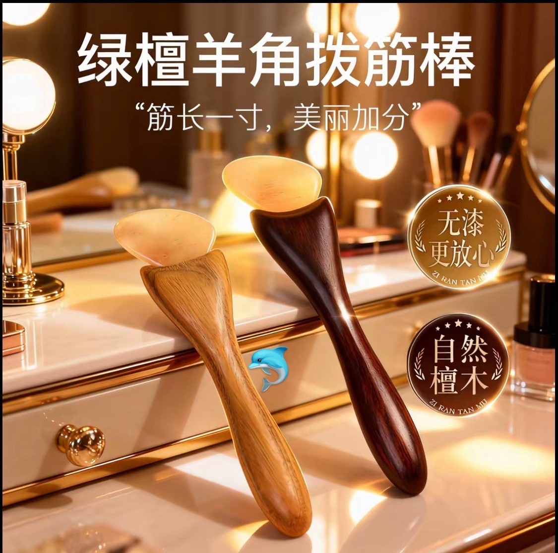 材质:紫光檀/绿檀 +羊角的材质 尺寸:约 12cm 长,3.2cm 宽 颜色:1️⃣黄色-绿檀 ,2️⃣深棕-紫光檀 功效:保健,按摩