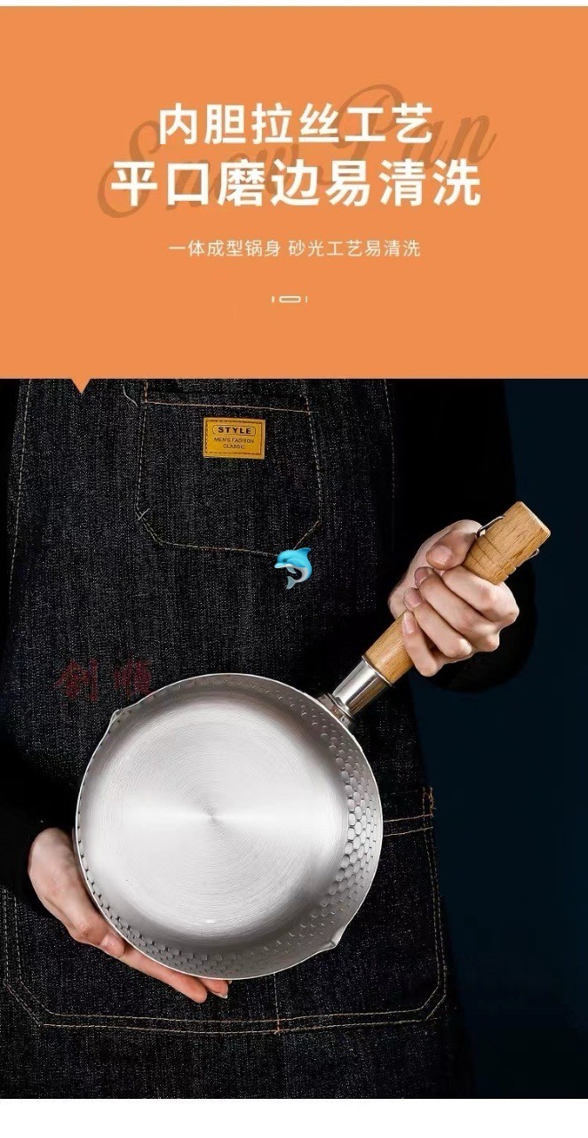 材质:304不锈钢 规格:22cm直径,⚠️无盖,木柄 适用灶炉:通用