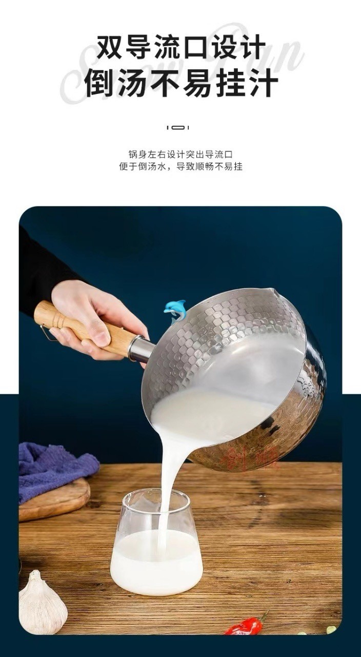 小身材大容量,热奶、煮面、熬汤,多样美食一锅搞定[胜利],手工锻造锤目纹防止溢锅,凹凸的雪花纹理,不仅为了美观,增加了锅内表面积,让汤水沸腾时往内翻滚,防止汤水加热时溢出!清洗🧽方便,一擦即净! 微信smart-link888 电话4372319888 可配送请按以上两方式联系!