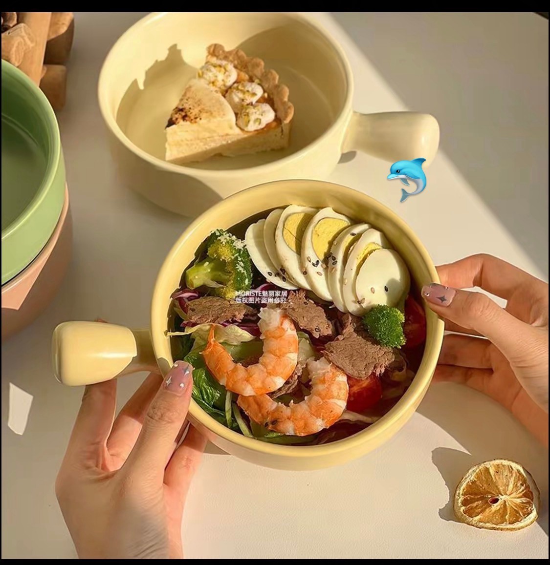 ✅ 轻食救星:装沙拉、水果碗,大口径+浅碗型,食材一目了然,拌菜不手抖,吃草也能吃出幸福感🥗 ✅ 儿童友好:圆润把手好抓握,陶瓷材质安全无毒,宝宝自己端碗吃饭,妈妈少洗一个碗(懒癌狂喜)👶 ✅ 正餐百搭:盛汤、装饭、焖菜… 20.6cm 直径能装一整份便当,5.4cm 深度不洒汤,打工人带饭超合适🍱 ✅ 烤箱/微波炉通吃:陶瓷材质耐高温,烤布丁、热饭菜直接进烤箱/微波炉,少洗一个容器(厨房偷懒王)🍳 ✅ 陶瓷+色釉工艺:高温烧制不褪色,碗身细腻有质感,摸起来像“云朵触感”,用半年还像新的一样✨ ✅ 单把设计:把手圆润防烫,端碗不打滑,女生也能轻松端起“满碗幸福”,再也不怕汤洒身上👧!