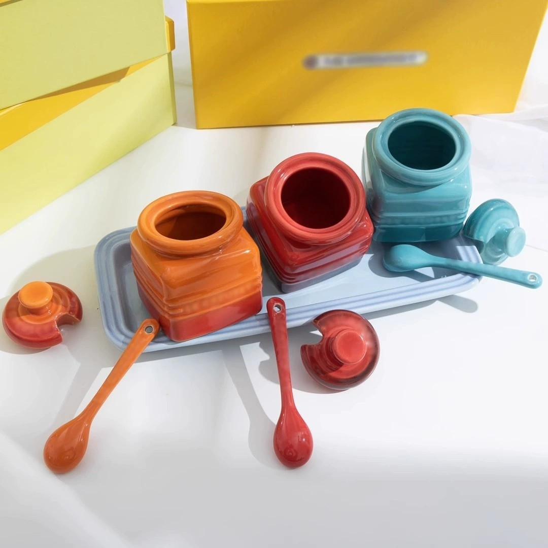 产品颜色: 1️⃣马卡龙色 2️⃣彩虹色 产品规格:三只调味罐,一个托盘,三把勺子 产品尺寸:罐子 口径4.5cm,高7cm 勺子 长11.2cm 托盘 长27cm,宽11.2cm,高2.2cm 微信 smart-link888 电话 (437)-231-9888 可配送请按以上两方式联系!!