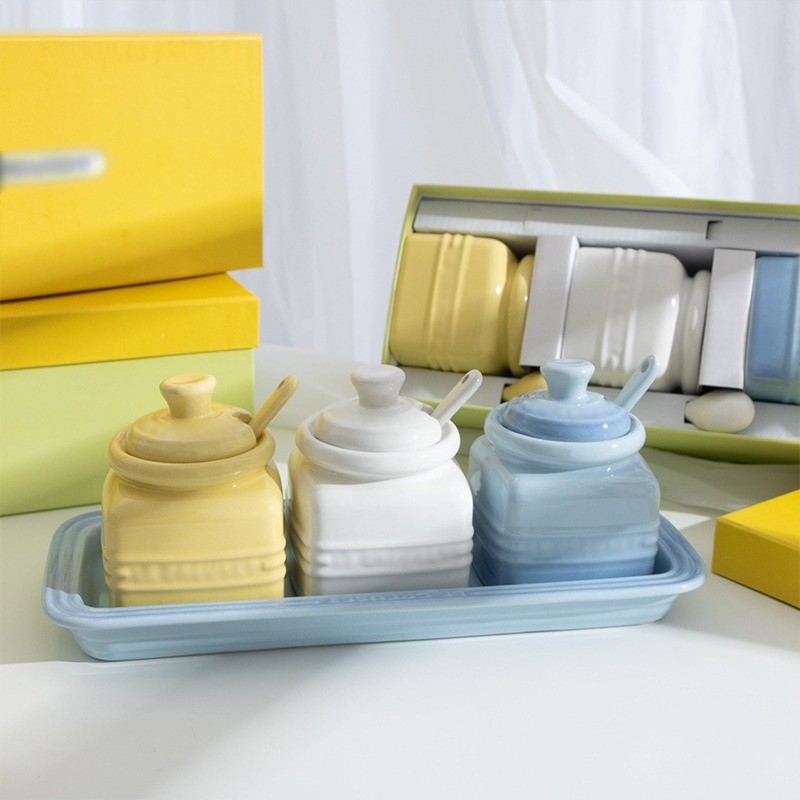 马卡龙色系陶瓷调味罐礼盒套装