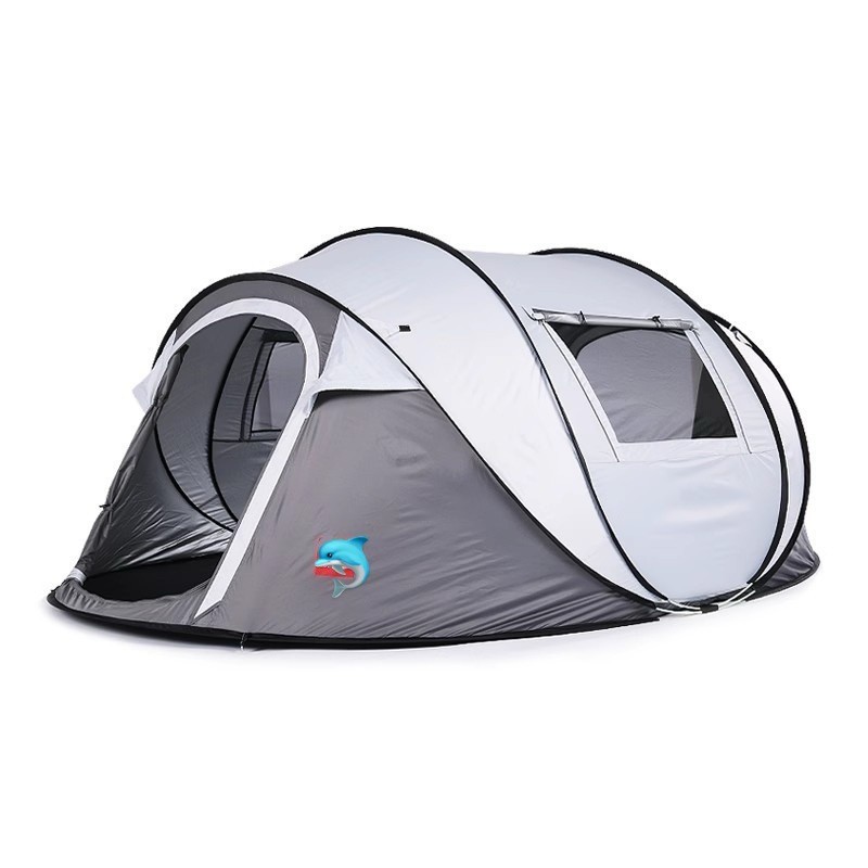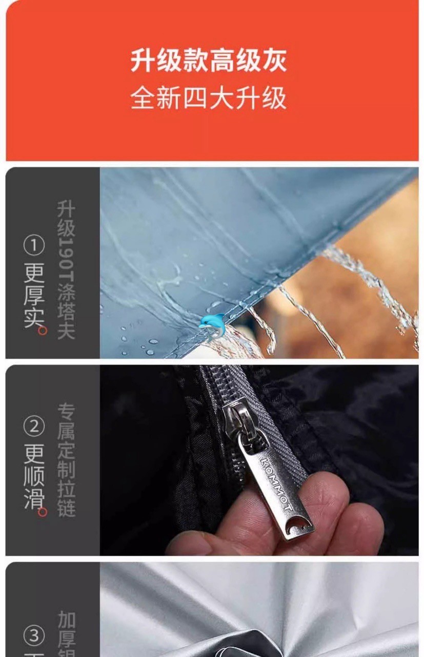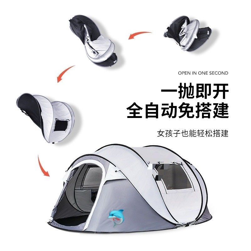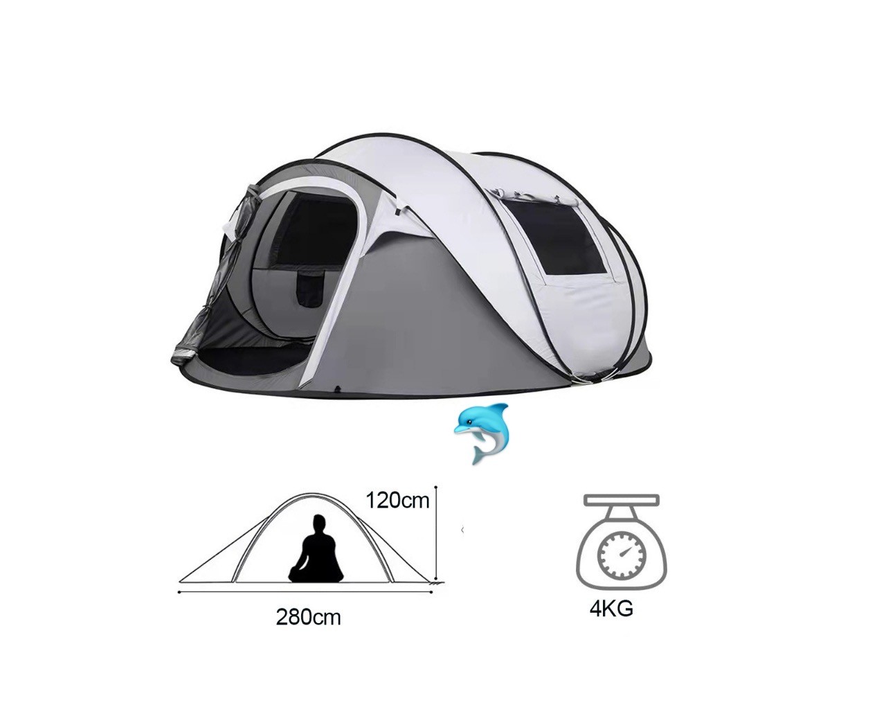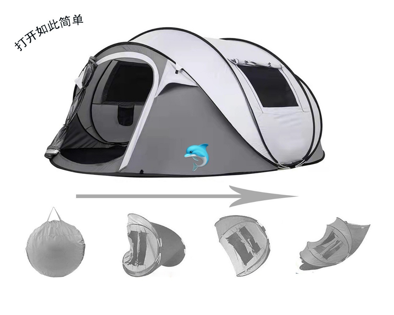 产品材质:防水尼龙布 玻璃纤维 产品尺寸:2*2.7米 适用范围:户外露营 防晒 防雨 适合5~8人使用 产品颜色:灰色
