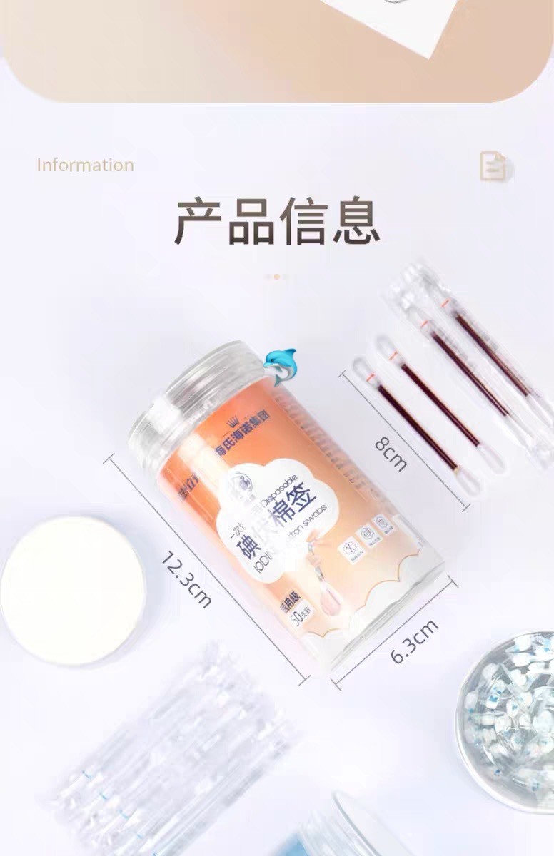 海诺-碘伏棉签 海诺-酒精棉签 规格:50支一盒 材质:脱脂棉 功效:消毒,灭菌 保质期:2年