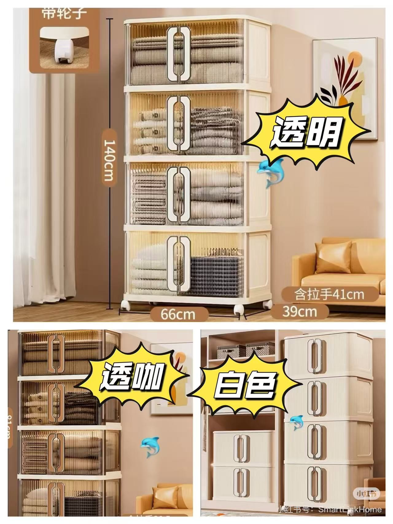材质:PP 颜色:1️⃣白色,2️⃣透明,3️⃣透咖 规格:4层 安装:拼接,可折叠 尺寸:140cm*66cm*39cm 微信:smart-link888 电话:4372319888 请以以上两种方式联系,谢谢