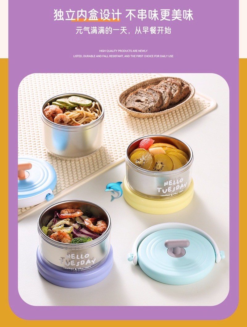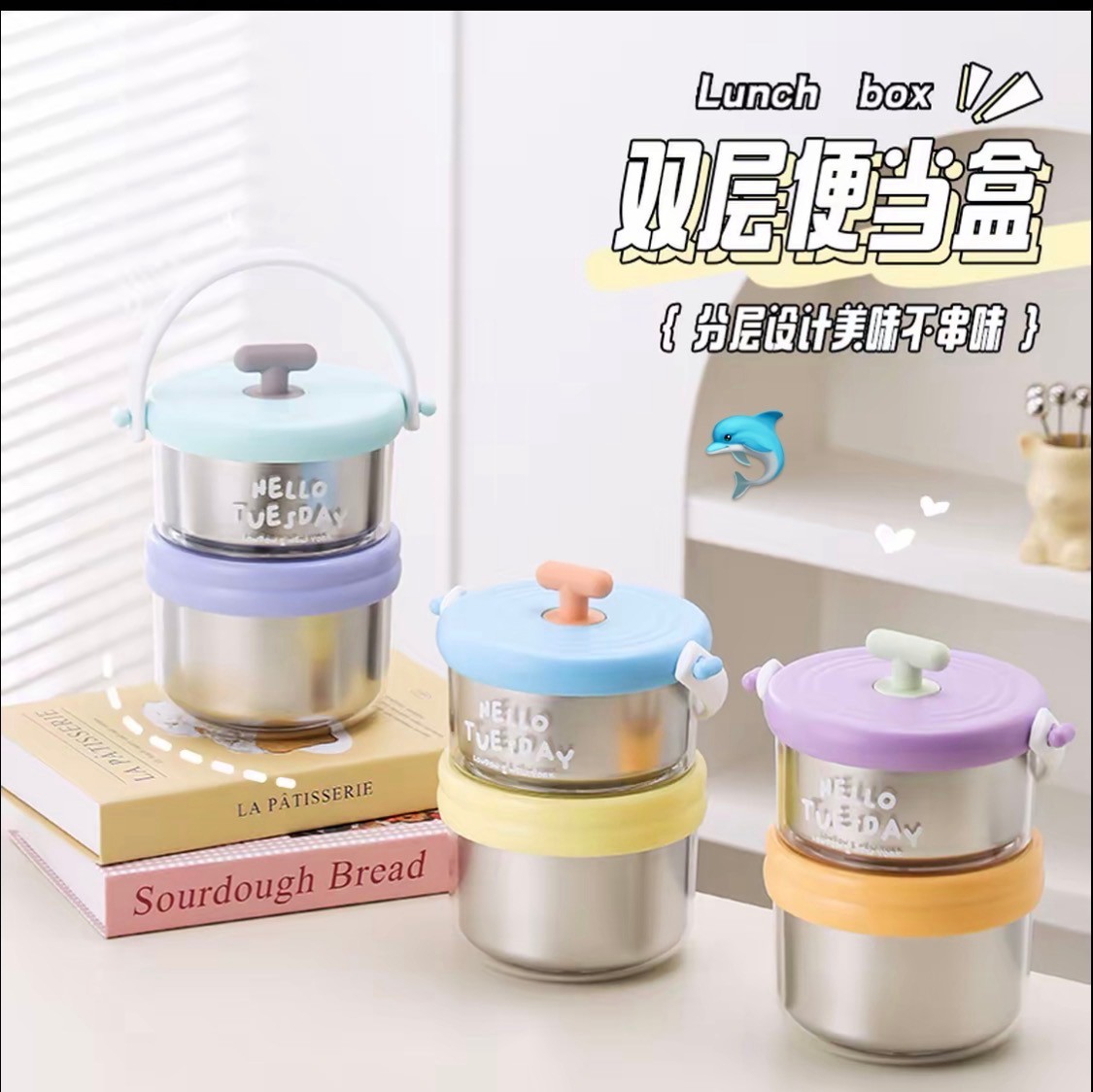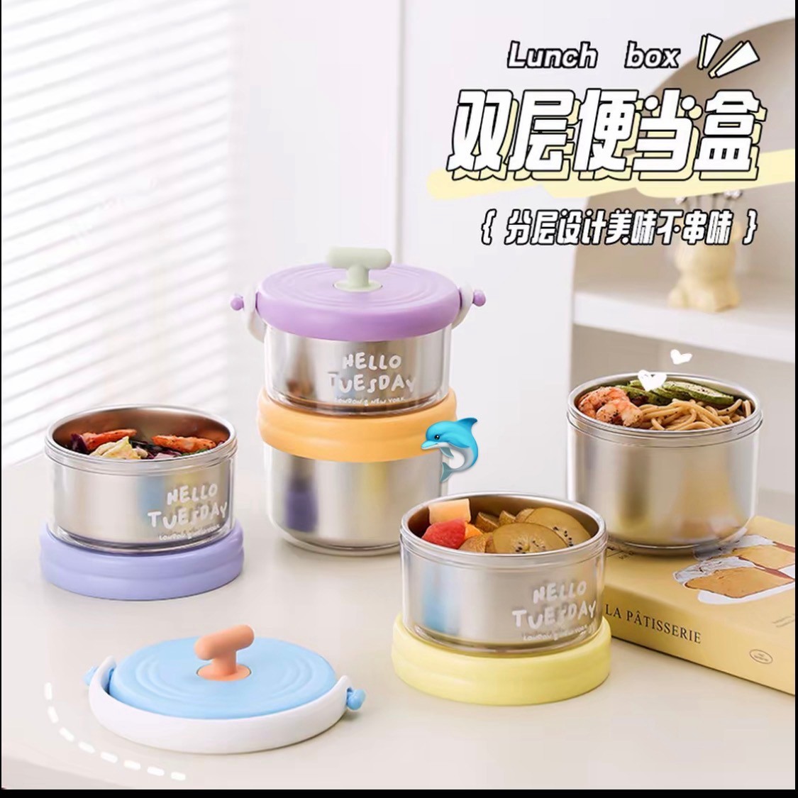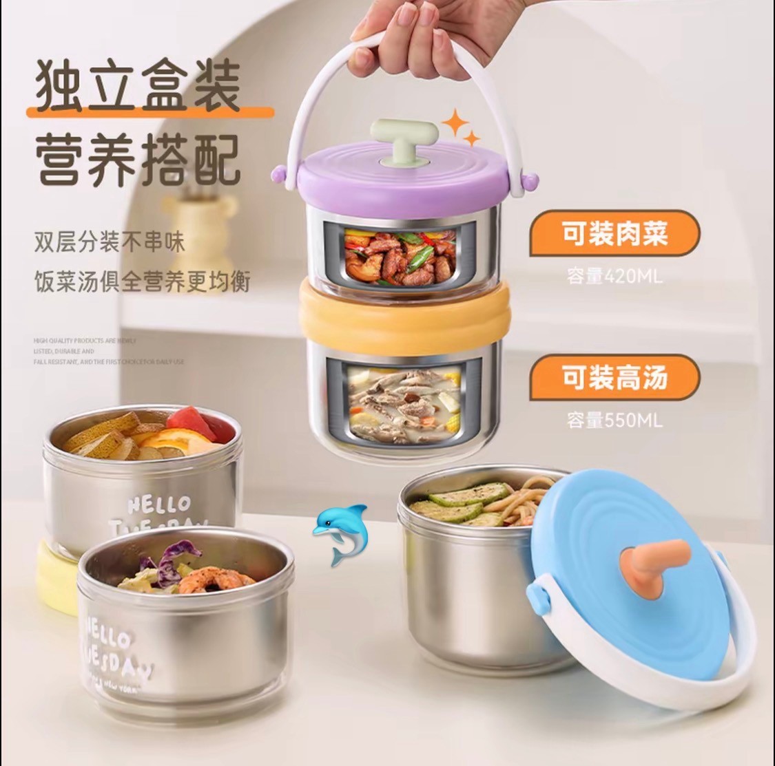 它采用双层设计,容量有550 + 730 = 1280ml,能轻松装下饭菜汤,营养搭配更均衡~而且独立内盒设计,多层分隔不易串味,让每种食物都保持原汁原味~还能微波炉加热,超方便~!内胆是食品接触用304不锈钢,耐腐蚀,使用安心,装食物超放心~ 它还有隐形小隔层自带收纳餐具,盖子有泄压阀设计,还有密封胶条,紧密不漏,美味路上不添堵~清洗也很容易,用起来超省心~ 有了这款双层不锈钢便当盒,不管是打工人还是学生党,都能告别外卖,对自己的胃负责,享受每一餐的好食光🥳~ 材质:304不锈钢 容量:550+730=1280ml 颜色:1️⃣海军蓝,2️⃣香芋紫,3️⃣雾霾蓝 款式:可双层叠加携带 适用:日常盛饭,上学便当,上班带餐等