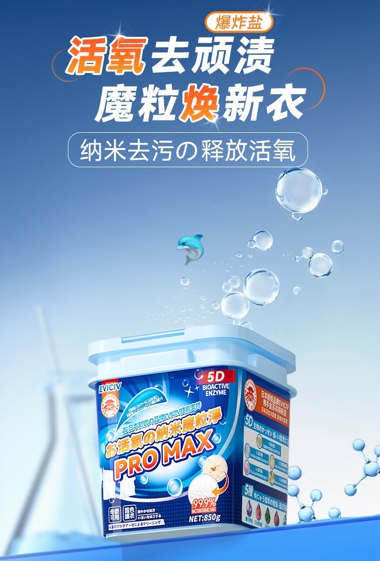 7.9%高活性氧含量,遇水疯狂冒泡泡🫧 茶渍、红酒渍、霉斑、氧化黄渍全分解,不用搓不用刷,泡一泡就干净~ 还能99.9%除菌除霉,洗完的衣服软乎乎带淡淡清香,窗帘、毛巾、校服都能洗! 采用湿法醇析工艺,精选过碳酸钠为核心成分,搭配偏硅酸钠、活氧颗粒科学配比,冷水中也能快速溶解,不结块不残留 ~ 经过权威检测,无磷无氯,分解后只有水和碳酸钠,环保又安全🌱 💕用法超简单!局部污渍用1/4勺+60℃热水搓5分钟,整件浸泡用1勺+热水泡30分钟,机洗直接加一勺搭配洗衣液就行🧴 白衣泡完亮到发光,宝宝衣服洗完放心啃咬,家务效率直接拉满~ 克重:毛重850g 保质期:3年